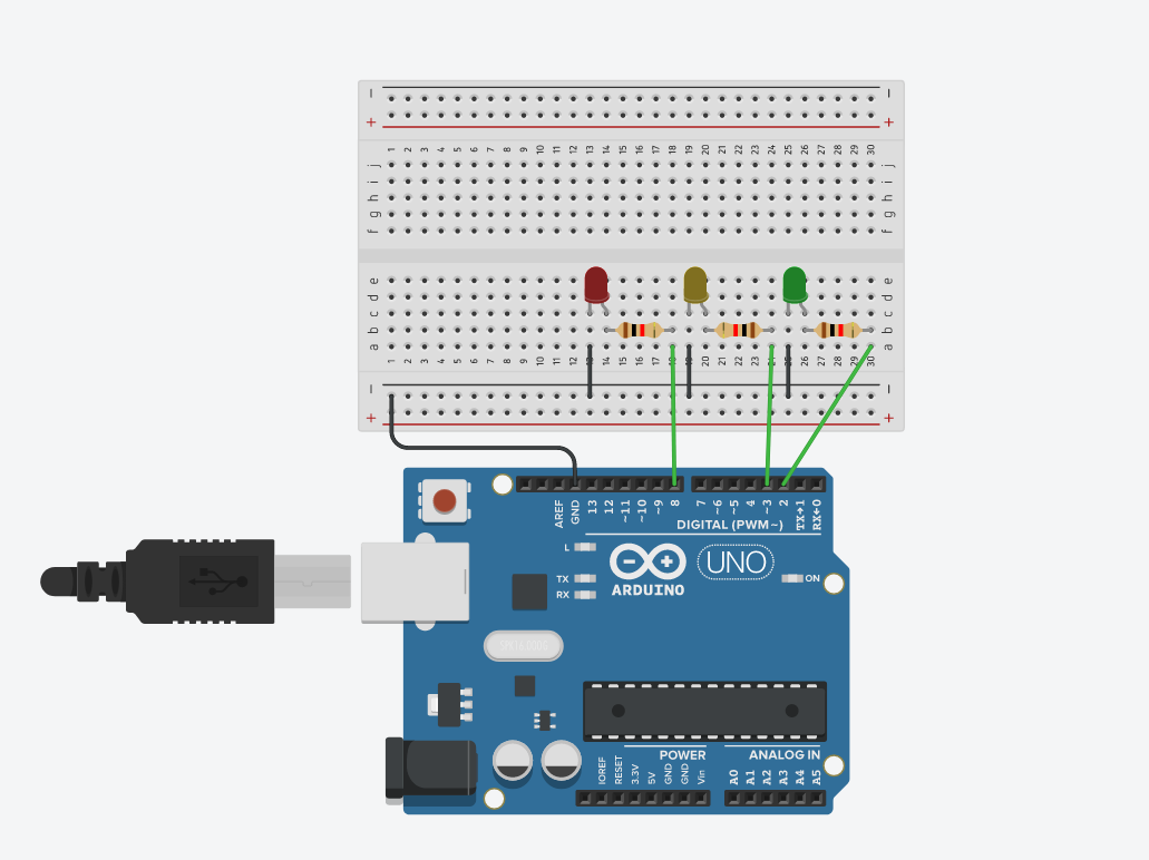 A very basic traffic light project in Arduino Uno for a University Assignment.